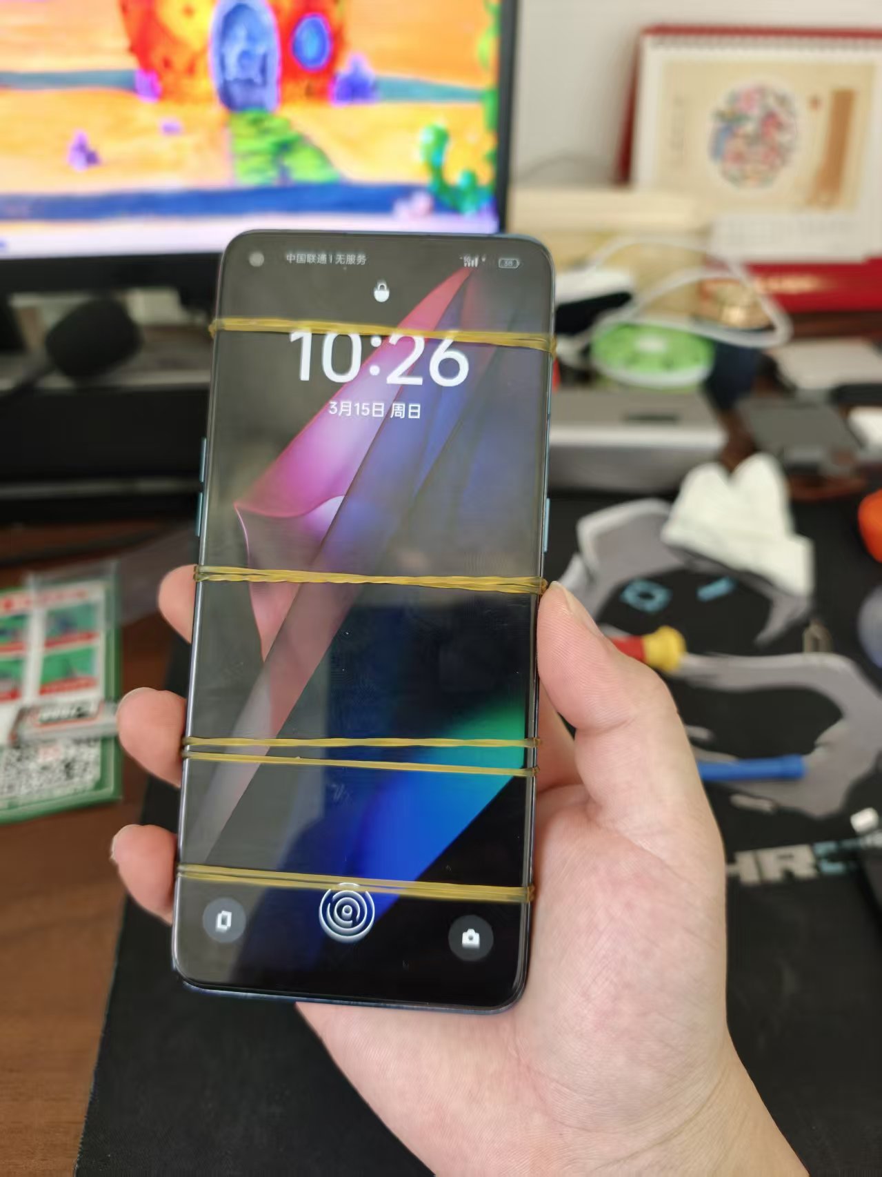 最后:用皮筋将手机均匀捆绑固定,静置约 3 小时,待胶水干透就大功告成啦!